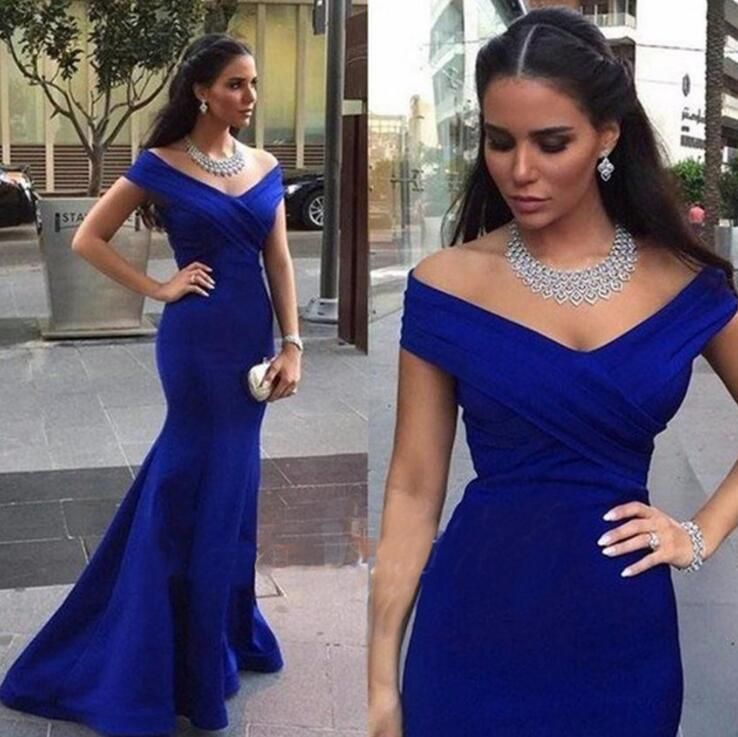 blue off the shoulder sweetheart full length evening dress,satin short sleeves long prom dress,GGD0025