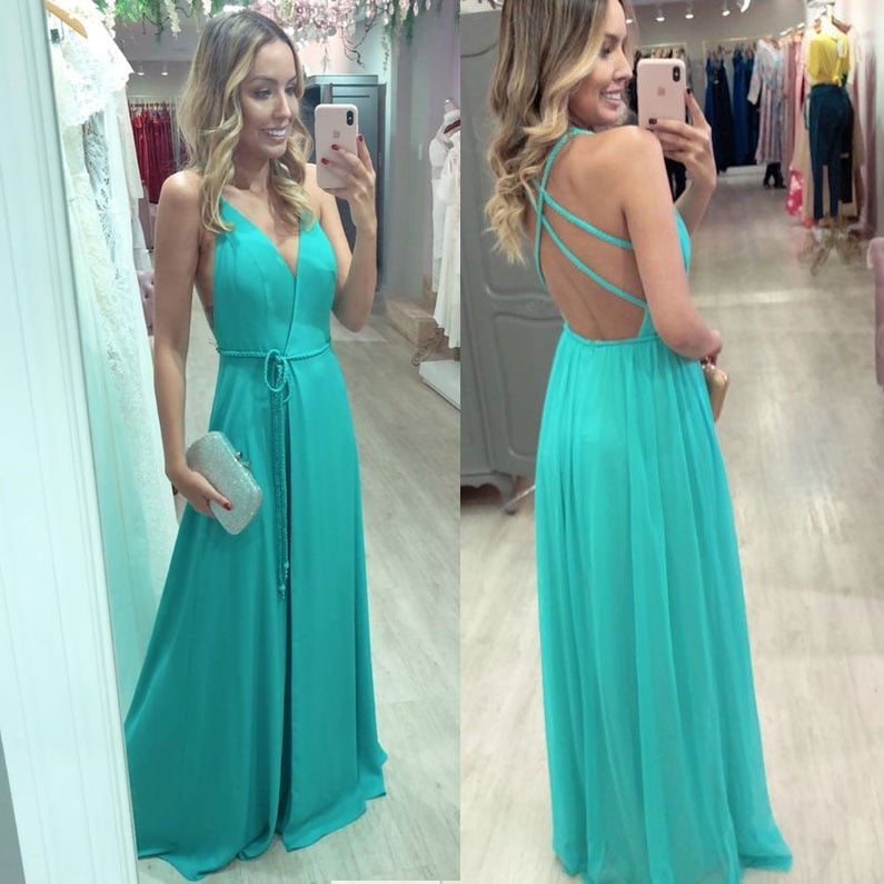 simple light green sleeveless v-neck full length evening dress,spaghetti-straps chiffon backless prom dress,GGD0110