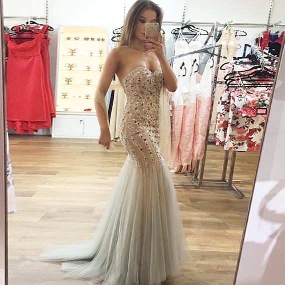 Mermaid Sweetheart Sweep Train Light Champagne Prom Dress with Beading,GGD0173