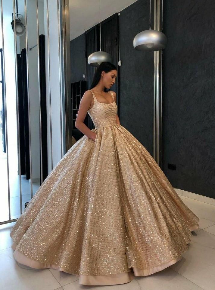 GGD0460,Ball Gown Quinceanera Gown Sequins Gold Sweet 16 Dress With Pockets
