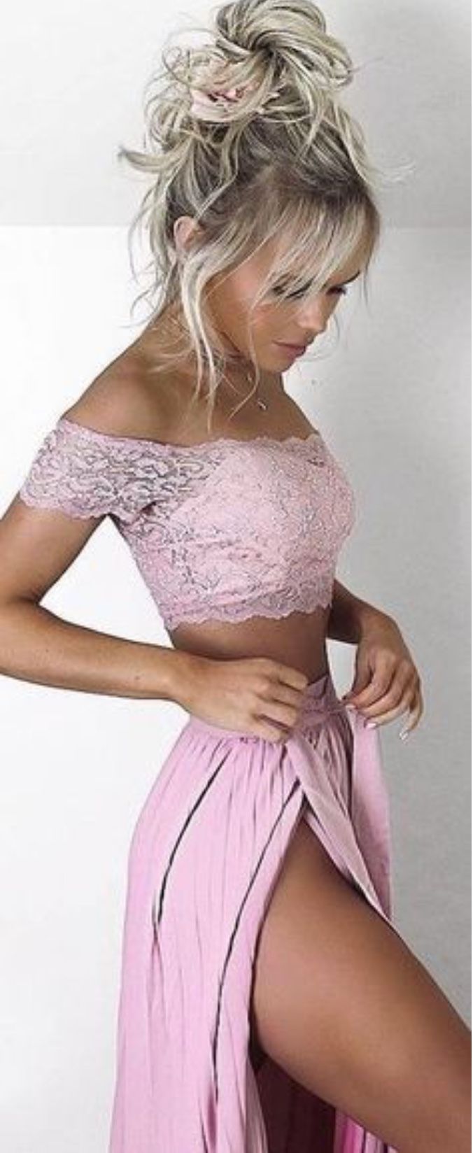 pink off the shoulder strapless full length evening dress,applique lace satin slit-skirt prom dress,GGD0265