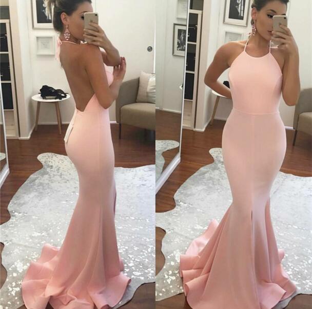 Glamorous Mermaid Backless Prom Dress,Pink Halter Sleeveless Prom Dress,GGD0266
